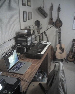 I’m lucky enough to have two desks, really. One with the computer and music studio. The other is a genuine writing desk, an old roll top that used to be in the office at my grandfather’s Bar and Grill. I refinished it by hand in the first years we were married, and it’s a place where a lot of good writing has gotten done, even back to when I was in high school.