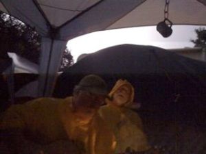 Rain Songs at Nashbill. We had a nice rain storm circle, where we plowed through about 40 or 50 “rain songs” around the Camp Nashbill circle…all while *real* rain fell around us, and some serious lightening flashed in every direction. Actually, I didn’t think this circle would happen…I thought the rain would be too severe, and I got well-deserved grief about it too. We had matching rain ponchos, provided to us by the ever-prepared Paul Porter and the Texas Storytellers Group. You have not really lived until you’ve sung songs in the rain like that.