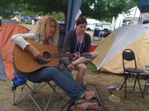 Mel brought Meg Braun and Karyn Oliver, from NYC and Baltimore, respectively. What *great* additions they were. They’re both incredible songwriters, and wonderful people. And if you just stumbled on our camp, you woulda thought they’d been with us for years, they fit in so well. Meg has a new CD and some really fine songs worth hearing. Karyn also has a fairly new CD, and some even newer songs that are fantastic. What an amazing voice and person. Emily Pickrell camped nearby us, and it was great to get to know her too.