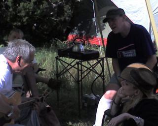Mel brought Meg Braun and Karyn Oliver, from NYC and Baltimore, respectively. What *great* additions they were. They’re both incredible songwriters, and wonderful people. And if you just stumbled on our camp, you woulda thought they’d been with us for years, they fit in so well. Meg has a new CD and some really fine songs worth hearing. Karyn also has a fairly new CD, and some even newer songs that are fantastic. What an amazing voice and person. Emily Pickrell camped nearby us, and it was great to get to know her too.
