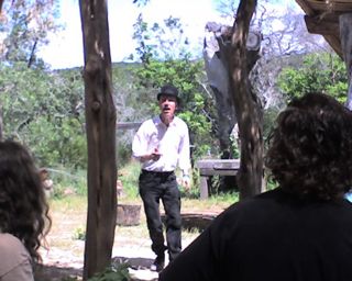 Rain Songs at Nashbill. We had a nice rain storm circle, where we plowed through about 40 or 50 “rain songs” around the Camp Nashbill circle…all while *real* rain fell around us, and some serious lightening flashed in every direction. Actually, I didn’t think this circle would happen…I thought the rain would be too severe, and I got well-deserved grief about it too. We had matching rain ponchos, provided to us by the ever-prepared Paul Porter and the Texas Storytellers Group. You have not really lived until you’ve sung songs in the rain like that.