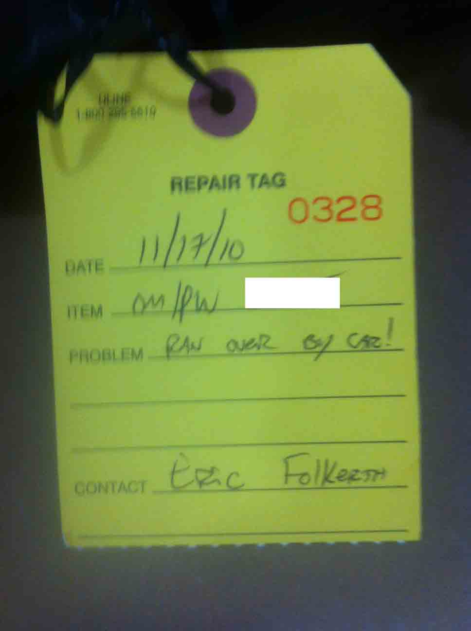 Other pics of me unpacking it Friday. Note the aire of incredulity in what they wrote on the repair tag….