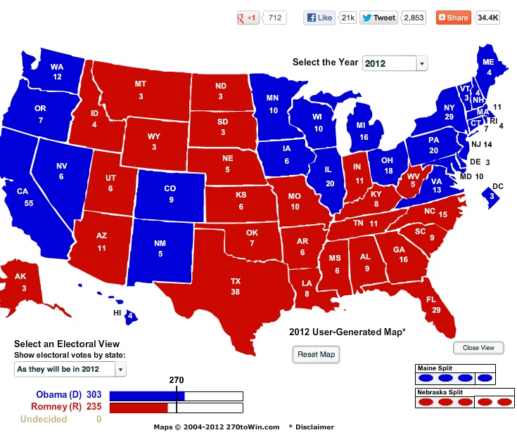 Both sides seem pretty confident, but the math seems to favor Obama. Anyway, just wanted to be on record. We’ll see how closely this resembles the actual result.