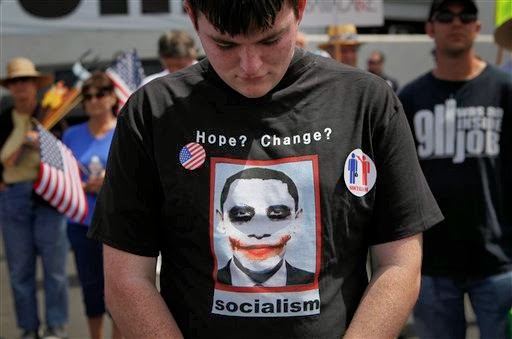 But Tea Party rallies around the nation continue to draw news coverage, whether or not they draw big crowds. And sometimes their signs look like this: