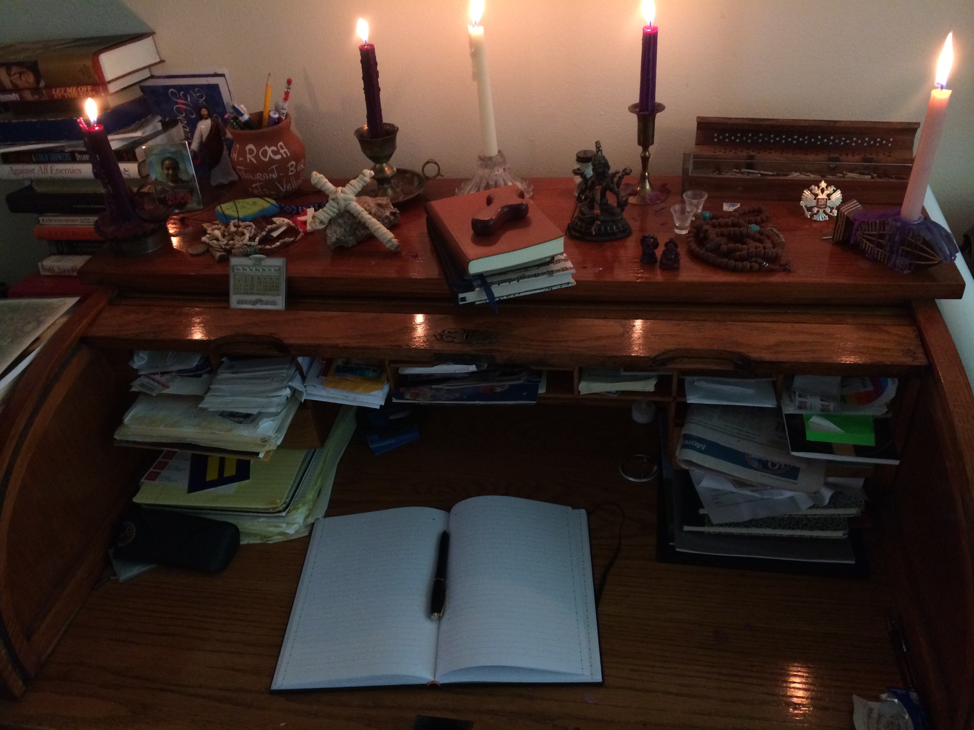 But when I came home and had a shower, I then lit some incense and candles and meditated/journaled here at my writing desk for a while. Amazing how much better I feel already. I think the feeling-better is cumulative….from both the ride…and the prayer/writing at this desk which is my centering place at home.