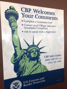 As we crossed back to the US yesterday, I snapped this first pic of a sign placed by Border Patrol: “CPB Welcomes Your Comments.”
