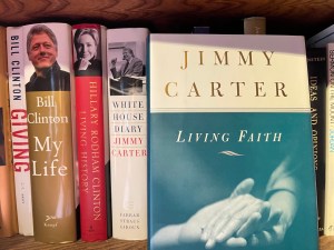 On our own bookshelf, downstairs, we have many memoirs of former Presidents. But also alongside these, are devotional books, written over the years by President and Roselynn Carter. They have written many of them. I can’t think of another ex-President who has written more books on Christian theology and life…can you?