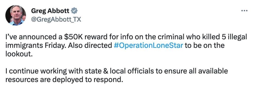 Dear Gov Abbott, I am writing you as a Christian pastor, and calling out your inclusion of the phrase “illegal immigrant” in your tweet regarding the senseless murders of five innocent people in Cleveland, Texas.