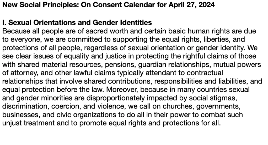 The Restrictions on LGBTQ clergy passed the consent calendar…as with other items, by 93%!!